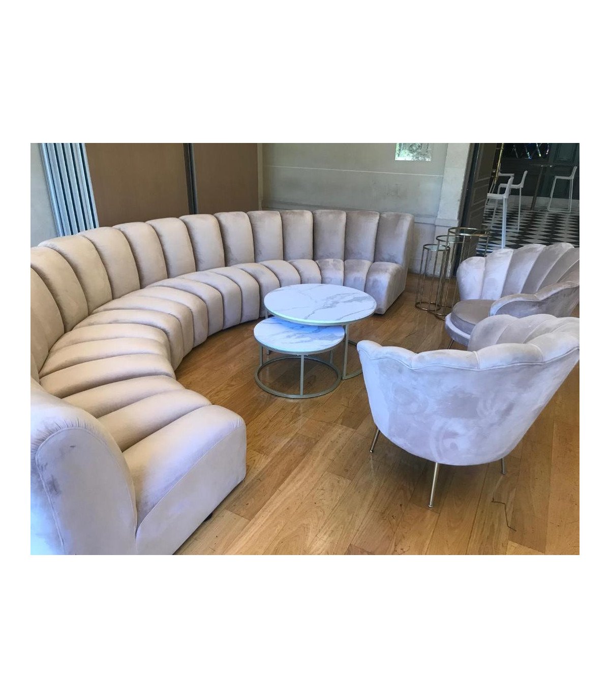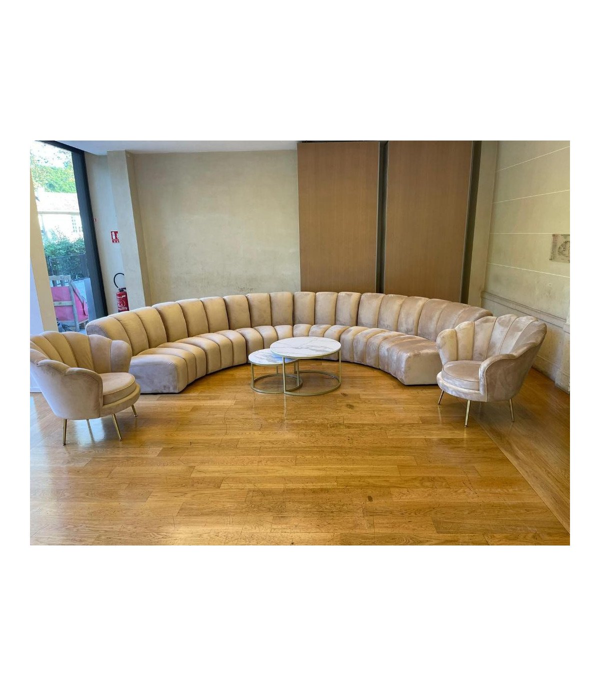 This sofa can be transformed into a half-circle Dim 420 x 84 H x 210 cm
