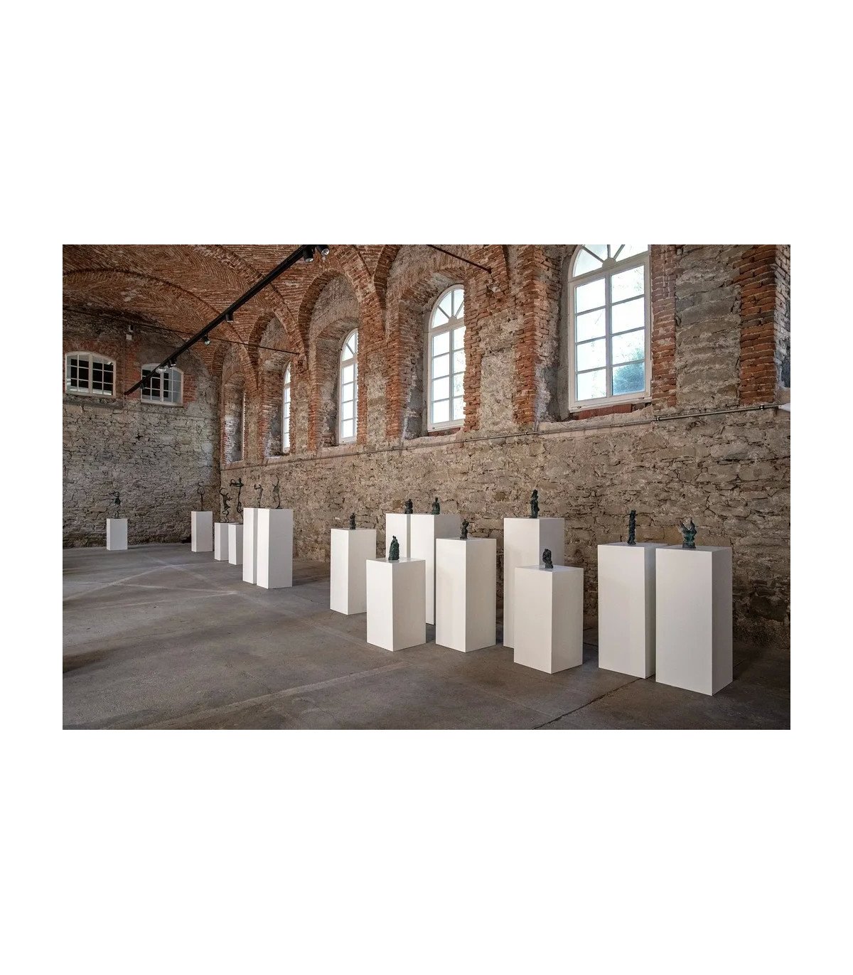This white stele with bell in smooth matte wood, 110 cm high and 30 x 30 cm wide, is designed to showcase your objects, works of art or creations at your events. Its sober, meticulous finish makes it a discreet but effective presentation medium, ideal for drawing the eye to what really counts: the item on display.