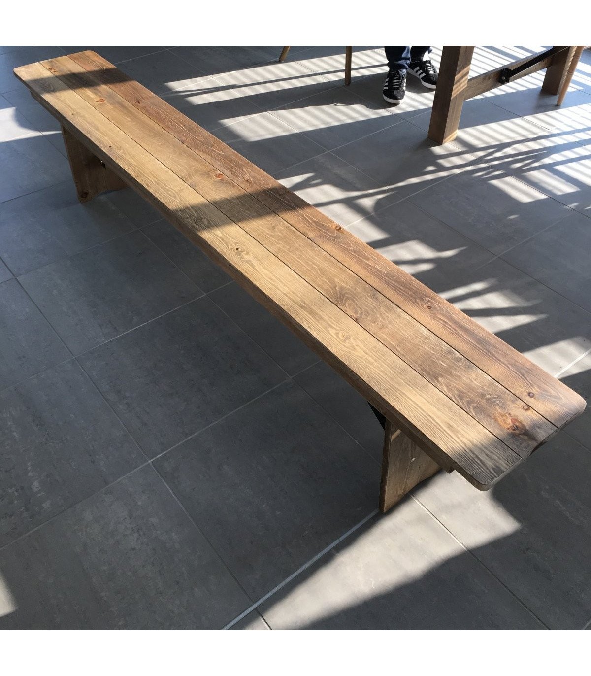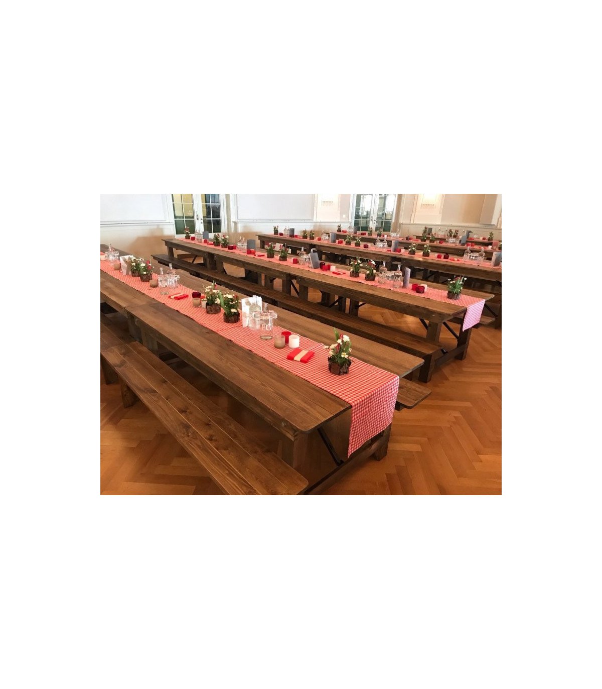 Its rustic and refined design makes it the perfect choice for creating a warm atmosphere, whether for a convivial meal, a relaxation area or a banquet-style setting. Combine it with our folding tables for a harmonious and functional look.