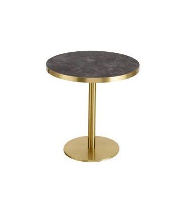 This trendy pedestal table in gilded metal with a black marble-effect top is available to rent for your events