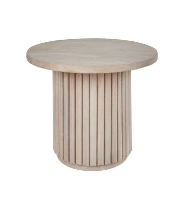 This round coffee table in mango wood is available for hire to furnish your event space.