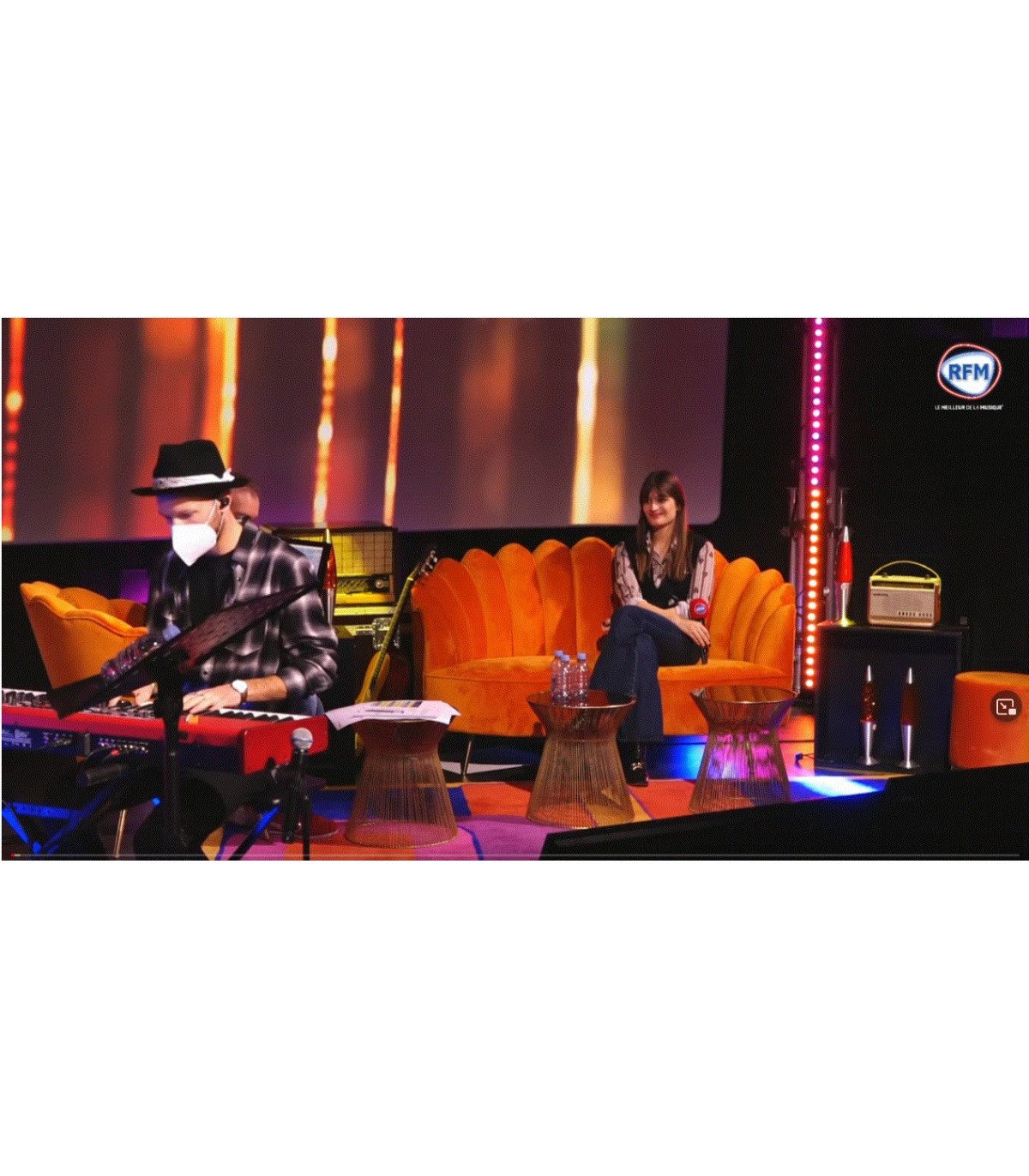Rent this pretty, rounded orange velvet sofa for an evening event or trade show.