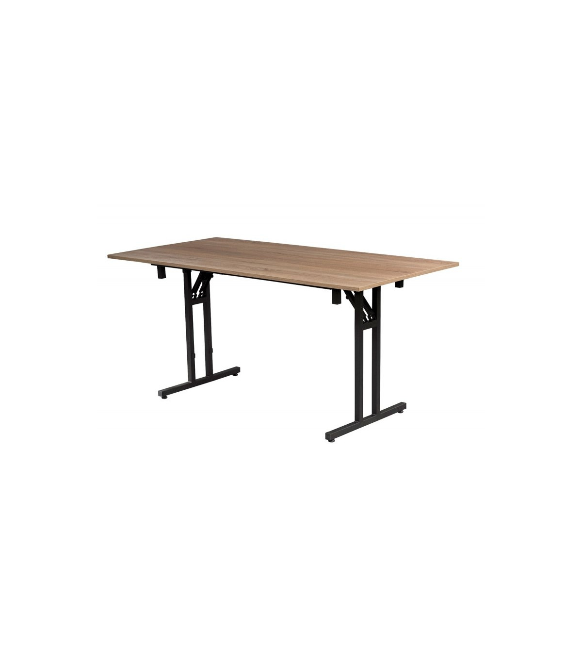 The rectangular shape of this 180 cm x 80 cm folding wooden table makes it easy to set up a reception room or temporary dining area. The light wood tabletop has a simple and functional look that blends in with many event settings. This table is often used to create rows of tables for a sit-down dinner, to set up a large table for a group meal, or to create reception areas at a trade show. The folding system also facilitates logistics during the set-up and dismantling phases of an event.