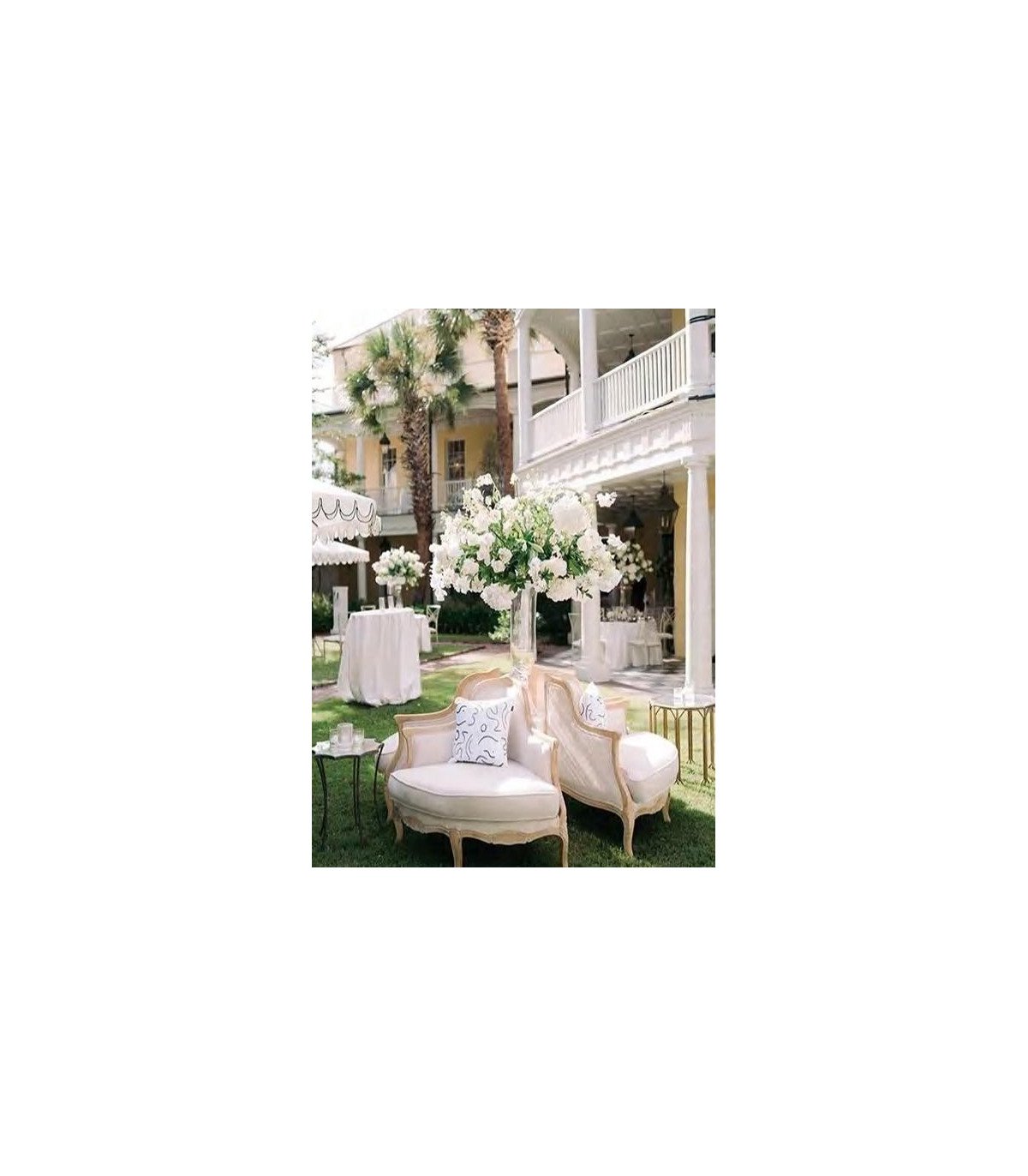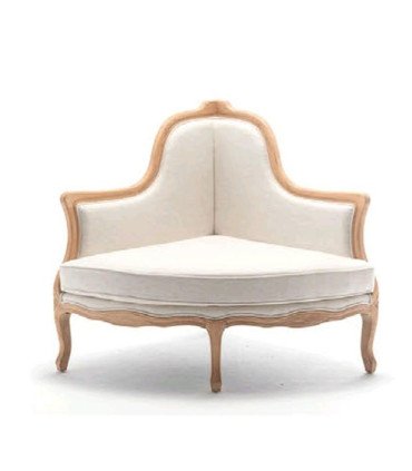 For the success of your wedding decoration, opt for the rental of this corner armchair in ceruse wood and beige linen fabric.