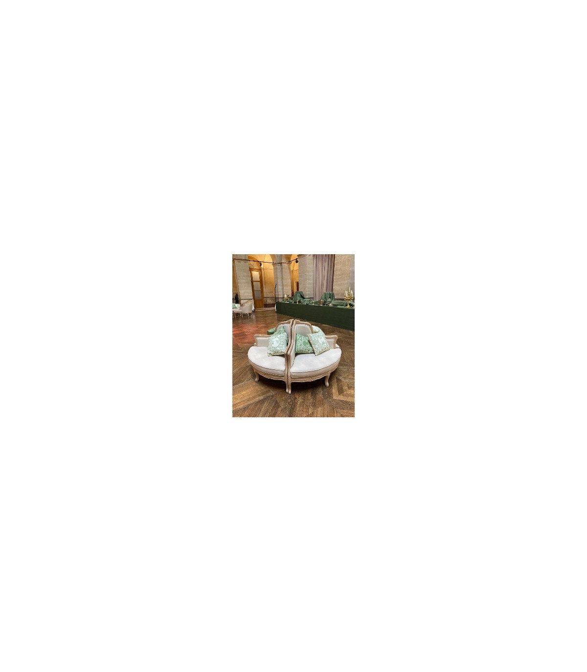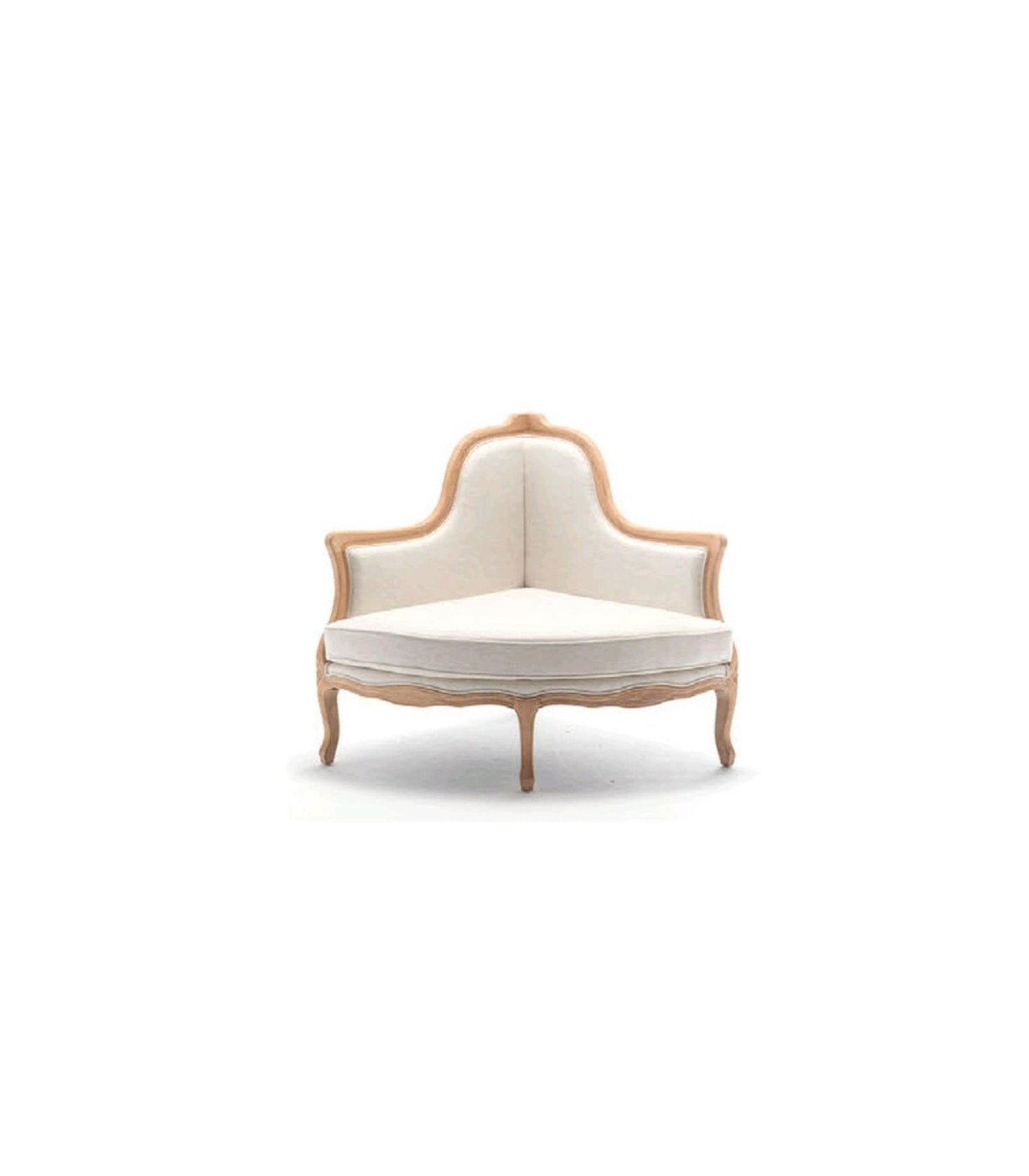 For the success of your wedding decoration, opt for the rental of this corner armchair in ceruse wood and beige linen fabric.