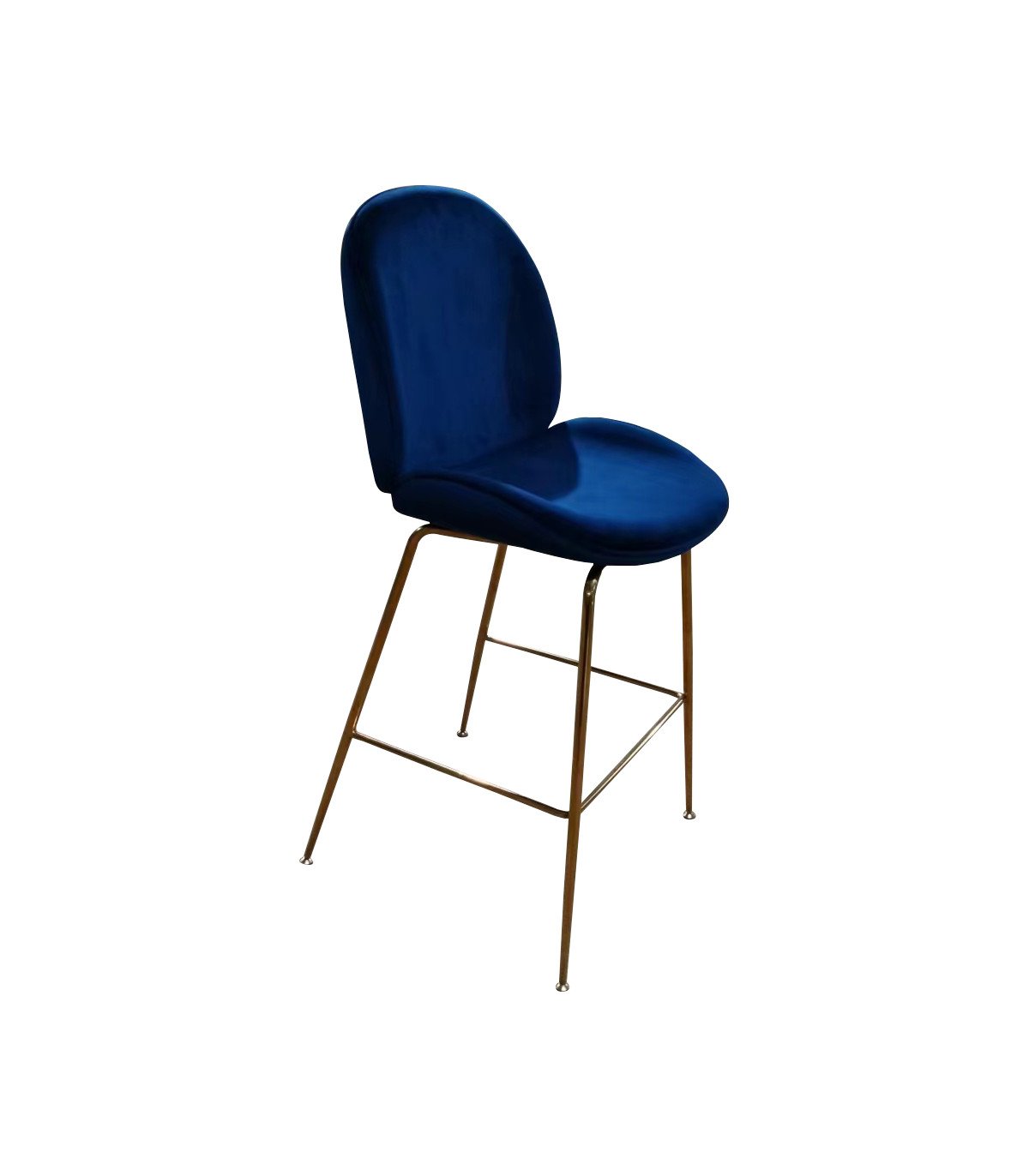 Chaise de bar bleu et pieds dorés H 115 cm