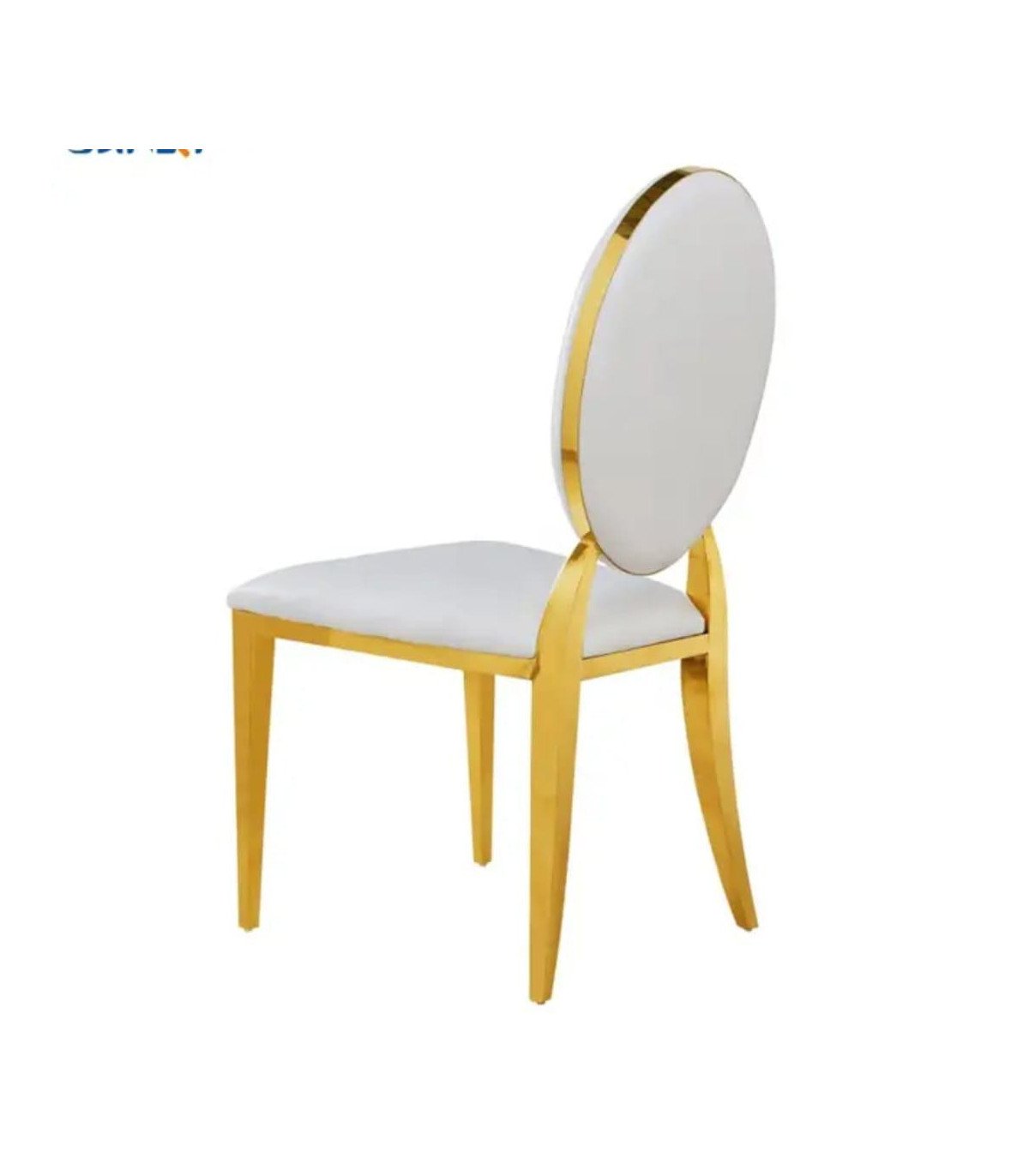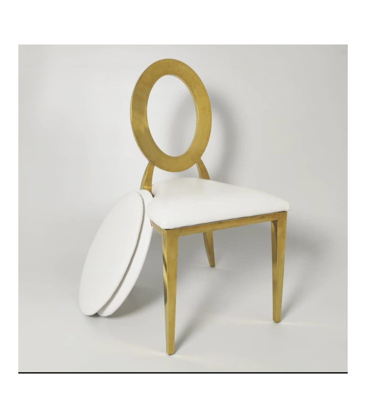 Location Chaise médaillon dorée avec galette blanche