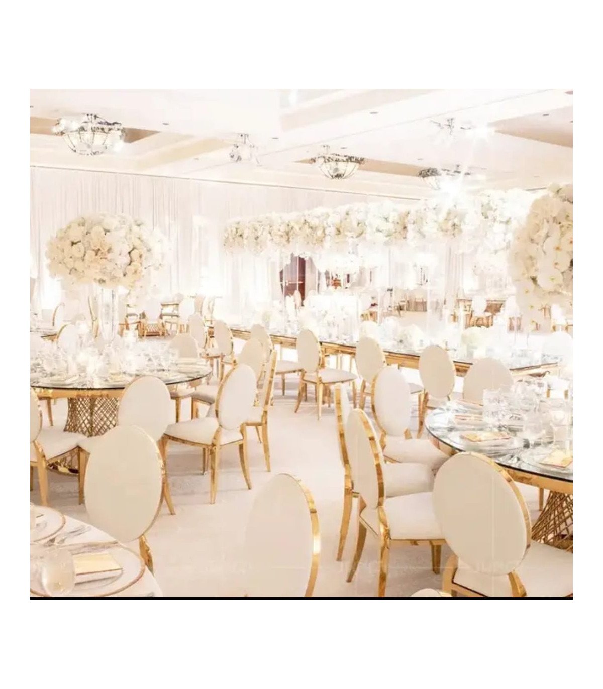 Pour quels événements louer cette chaise médaillon dorée avec galette blanche ?