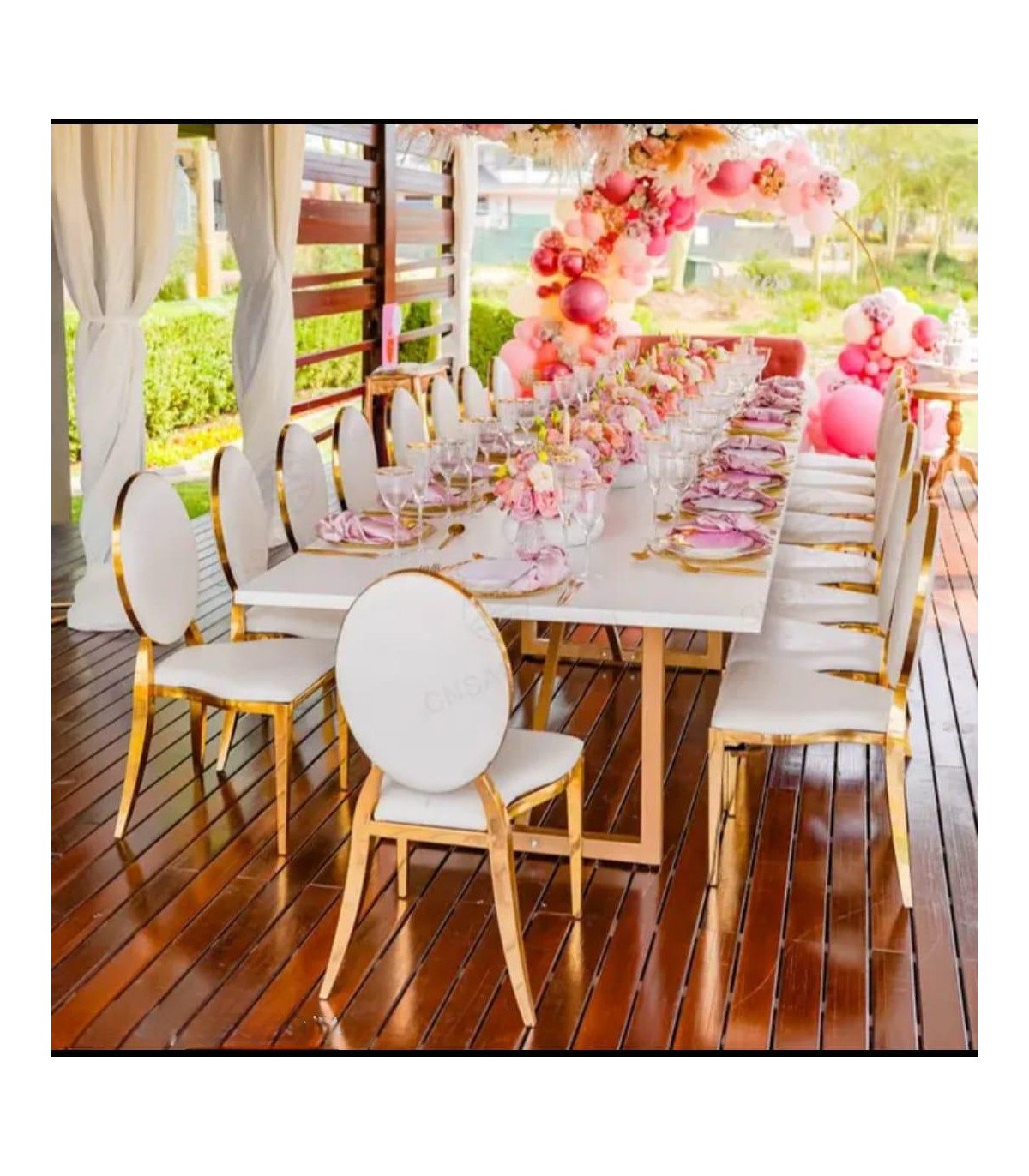 Son design permet également des combinaisons harmonieuses avec d’autres références de notre catalogue, comme les chaises Napoléon, les chaises pliantes ou les tables basses. Pour créer un environnement cohérent, cette chaise peut aussi accompagner du mobilier lumineux ou des bancs pliants, selon l’ambiance et le type d’événement que vous imaginez.