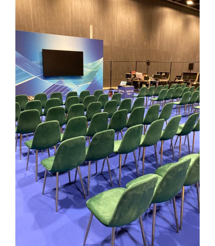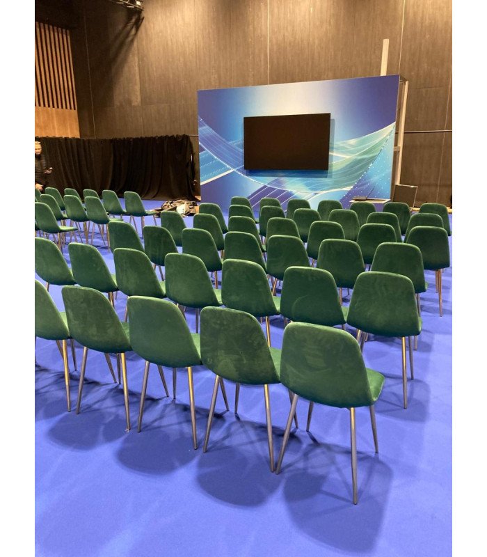 La chaise style scandinave en velours vert séduit par son dossier enveloppant, son assise confortable et ses lignes épurées. Revêtue d’un velours vert profond et posée sur des pieds dorés élancés, elle apporte une touche structurée à vos aménagements événementiels. Avec ses dimensions L 45 x P 55 x H 87 cm, elle s’intègre facilement autour d’une table de réception, d’un espace conférence ou d’un dîner assis. Ce modèle est proposé en location afin de créer des configurations harmonieuses, sans contrainte d’achat ni de stockage.