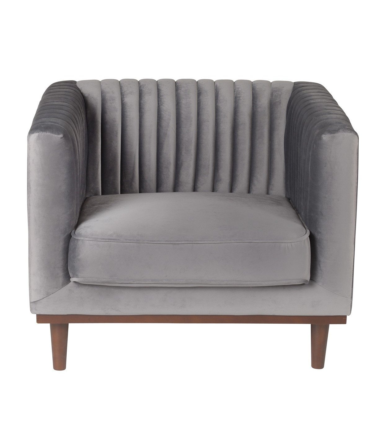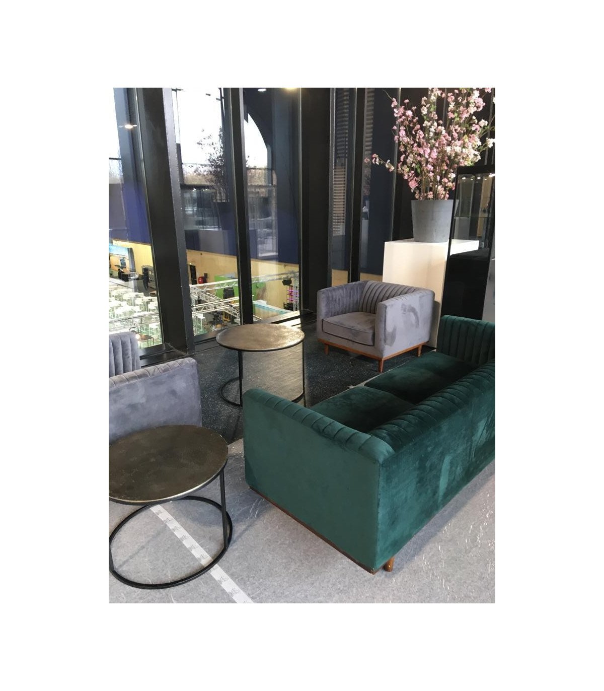 Pour la réussite d'un salon professionnel ou d'une soirée événementielle, optez pour la location de ce joli fauteuil en velours gris.