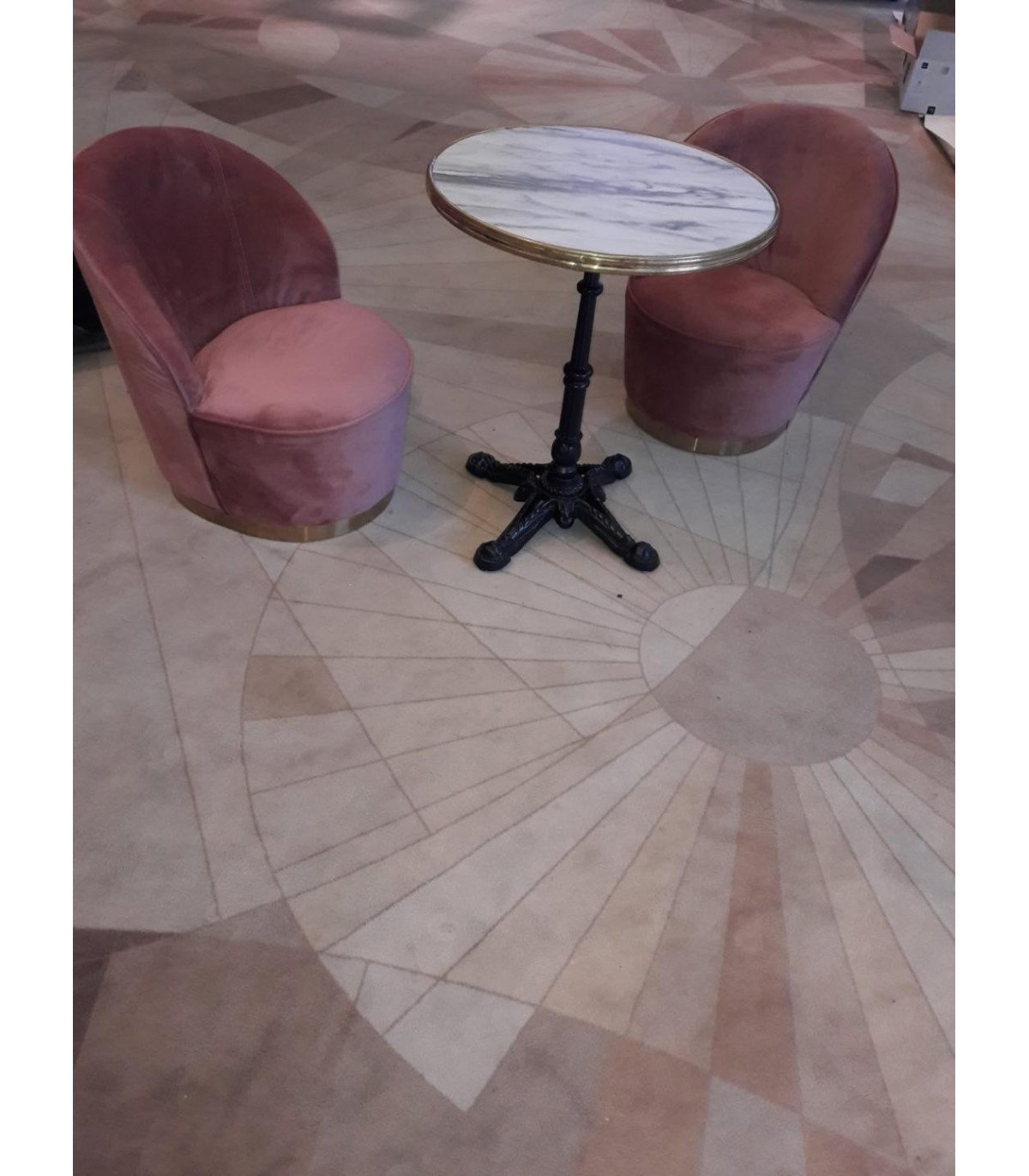 Cette chauffeuse en tissu vieux rose fait partie de nos assises de style pour événementiel haut de gamme à Paris.