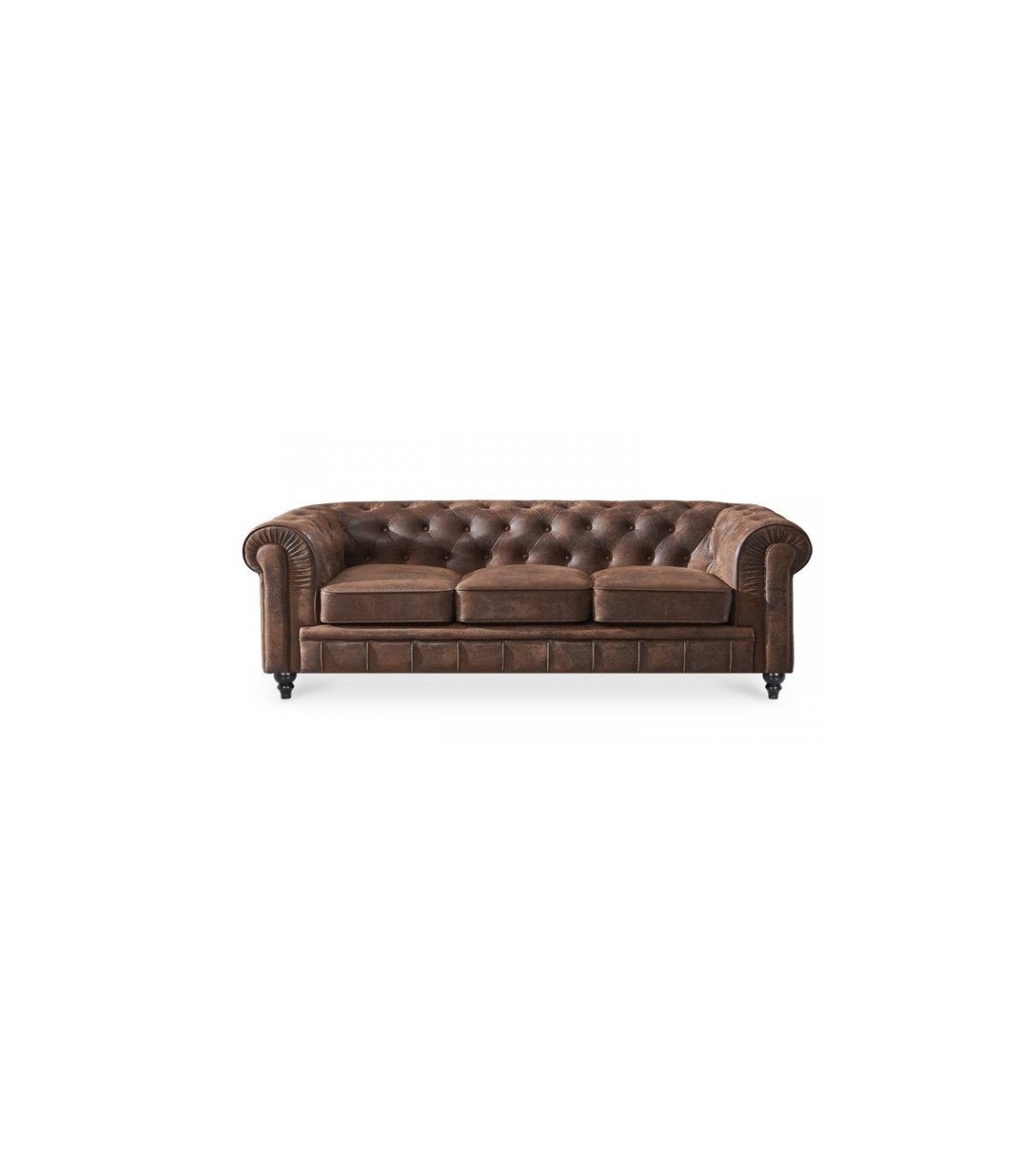 Canapé Chesterfield en tissu 3 places marron vieilli