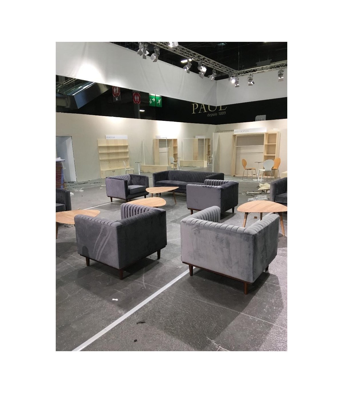 Le canapé en velours gris proposé à la location vous apportera à coup sûr le succès escompté pour l'organisation de votre salon congrès ou séminaire sur Paris, en Ile de France ou à l'étranger.