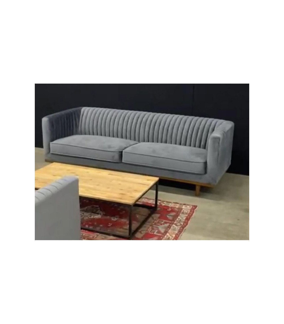 Pour la réussite d'un salon ou d'une soirée événementielle, optez pour la location de ce joli canapé 3 places de style rétro en velours gris.