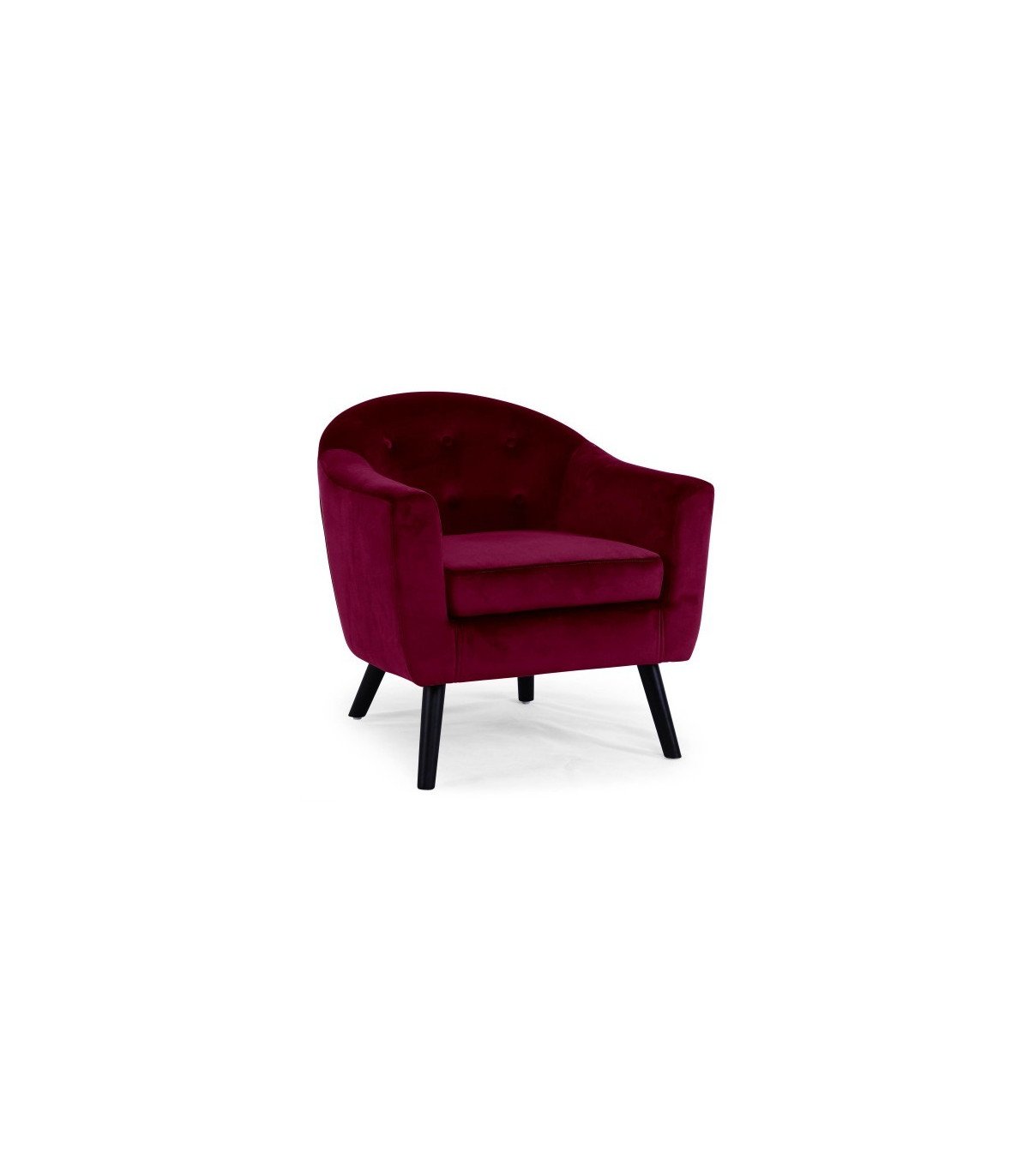 Pour aménager un salon professionnel ou un espace lors d'un séminaire, 126 Events vous propose ce joli fauteuil de style scandinave en tissu rouge.