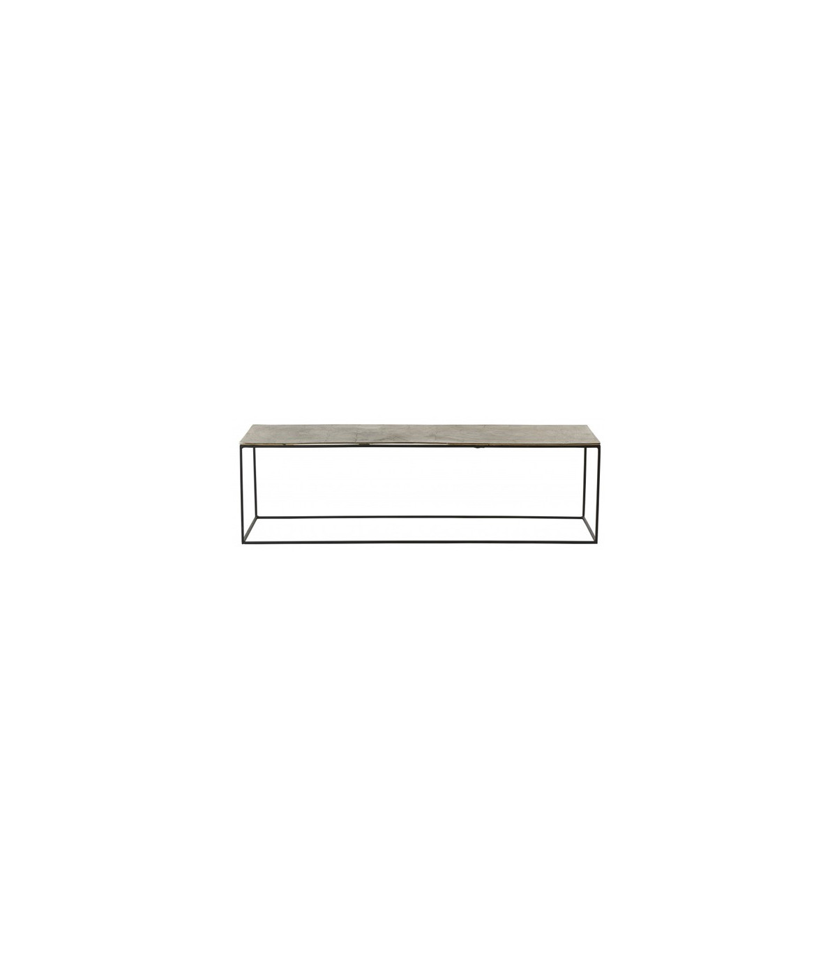 Cette jolie table basse de forme rectangulaire en métal et bois est proposée à la location pour l'aménagement de votre espace événementiel.