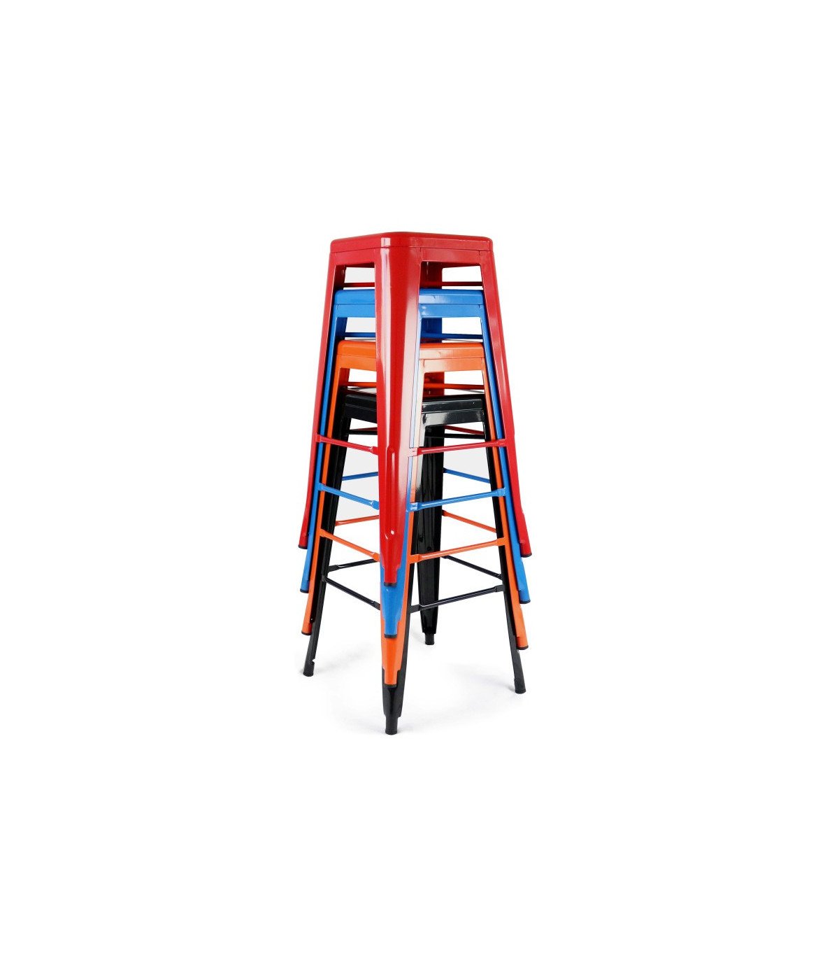 Un tabouret haut métal rouge assise 76 cm au style industriel affirmé