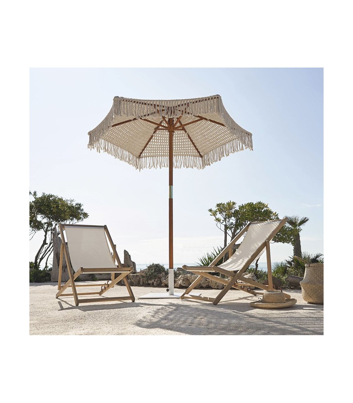 Apportez une ambiance tropique à vos événements avec notre parasol blanc écru en macramé. Son design raffiné et ses finitions artisanales en font un élément de décoration idéal pour un shooting photo, une garden party ou toute réception en extérieur. Disponible à la location, ce parasol est parfait pour créer un espace ombragé et tendance.